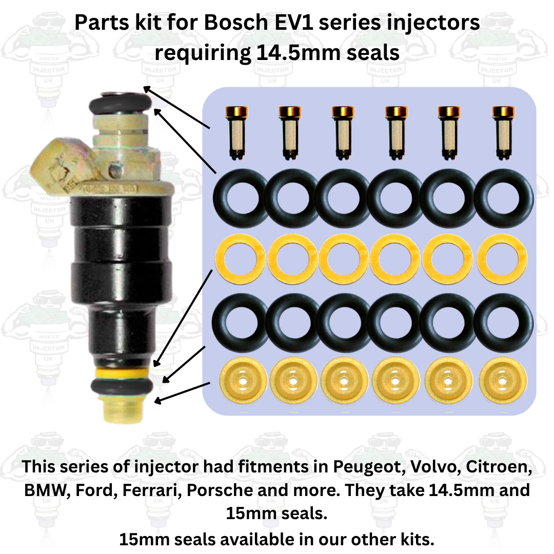 Service Kit For Bosch 0280150 EV1 Series Injectors Featuring Filters, Seals, Spacers & Pintle Caps 6 Cylinders - Kit 10